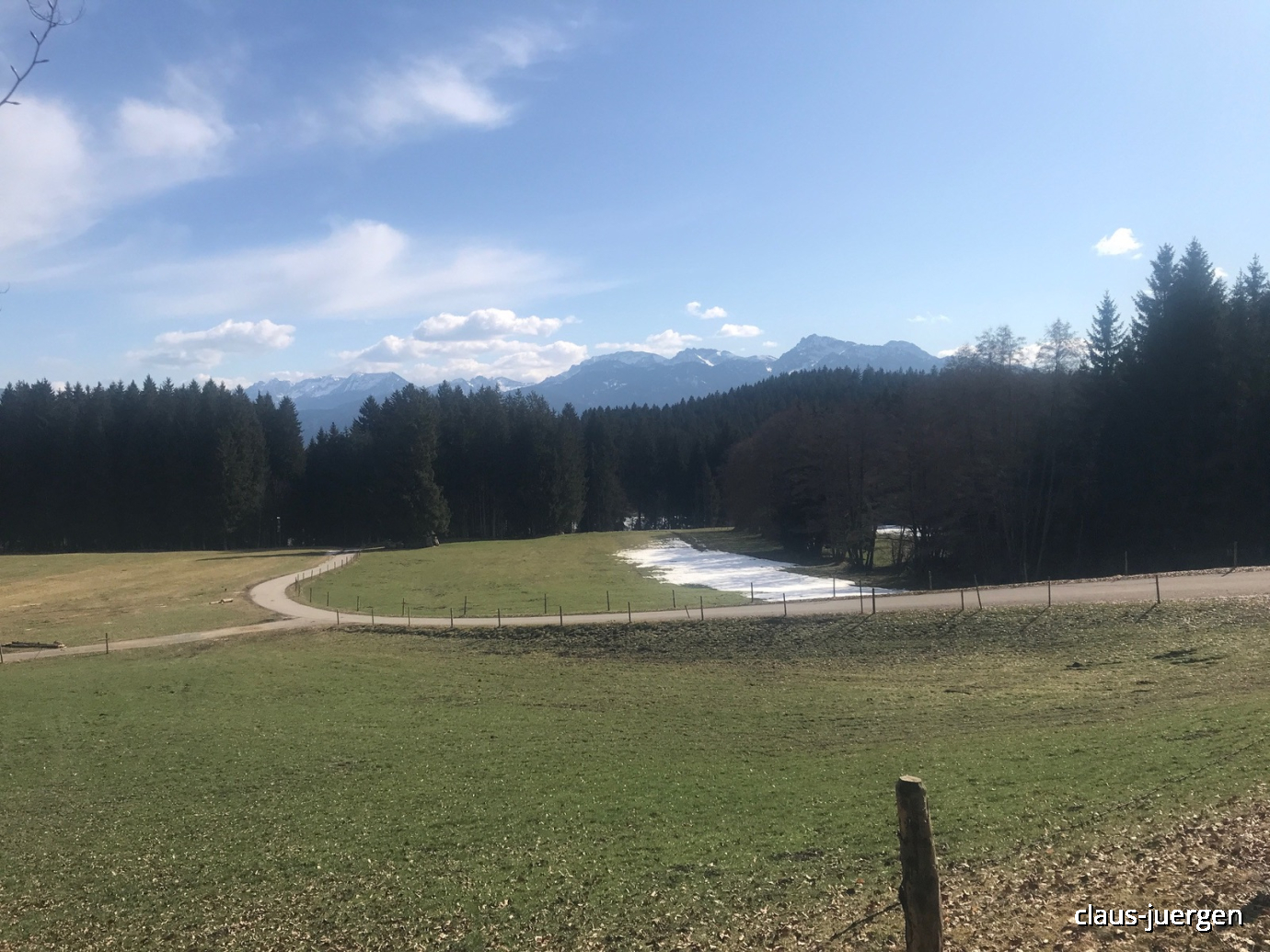 Die Berge des Ostallgäus sind noch schneebedeckt.