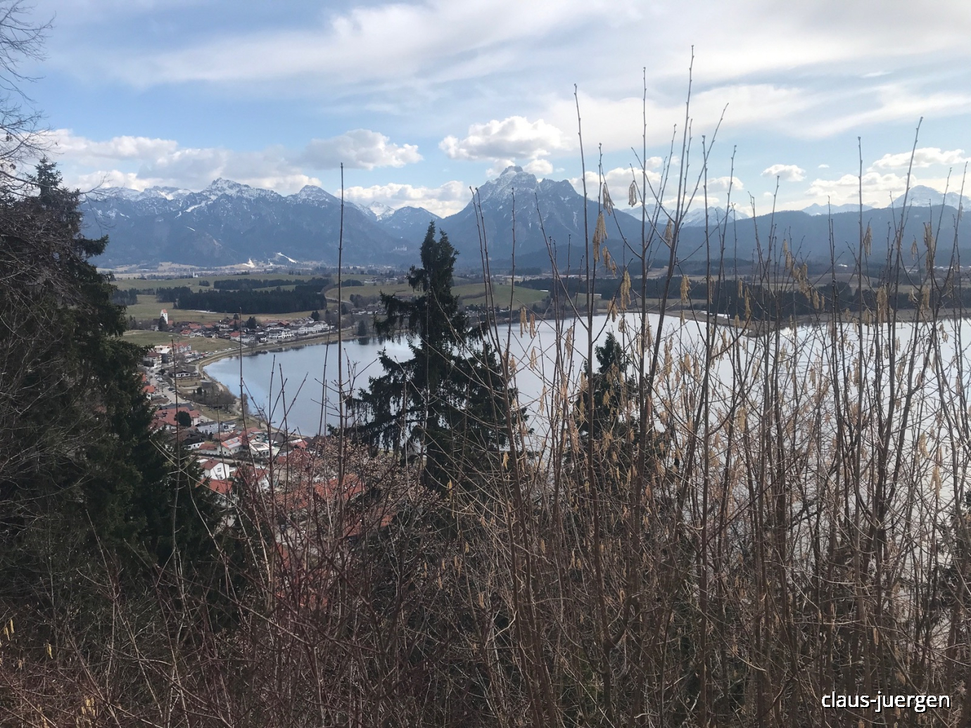 Am nördlichen Seeufer liegt das Dorf Hopfen. Man nennt diesen Abschnitt am Ufer auch die Allgäuer Riviera. Das Klima passt wohl nicht so ganz zu diesem Begriff. Die dortigen Preise für die Gastronomie und Hotellerie schon eher.