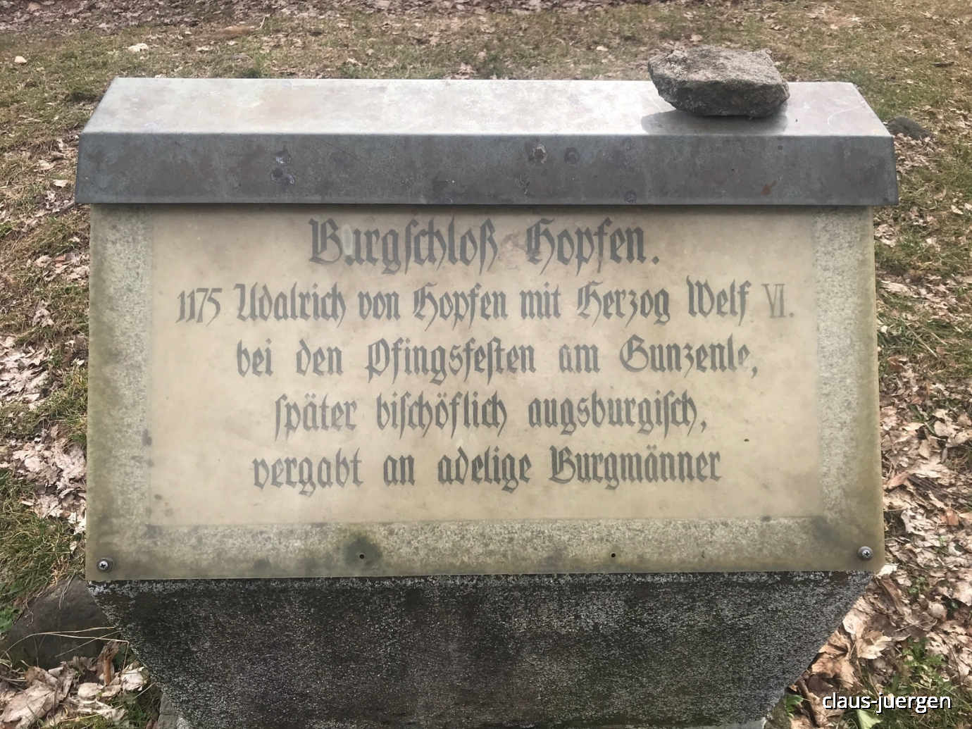 Obwohl ich in dieser Gegend aufgewachsen bin, wusste ich bis in die achtziger Jahre des vergangenen Jahrhunderts nichts von der Burgruine Hopfen. Der Grund liegt darin, dass die bis auf einen kleinen Mauerrest komplett vom Wald überwuchert war.