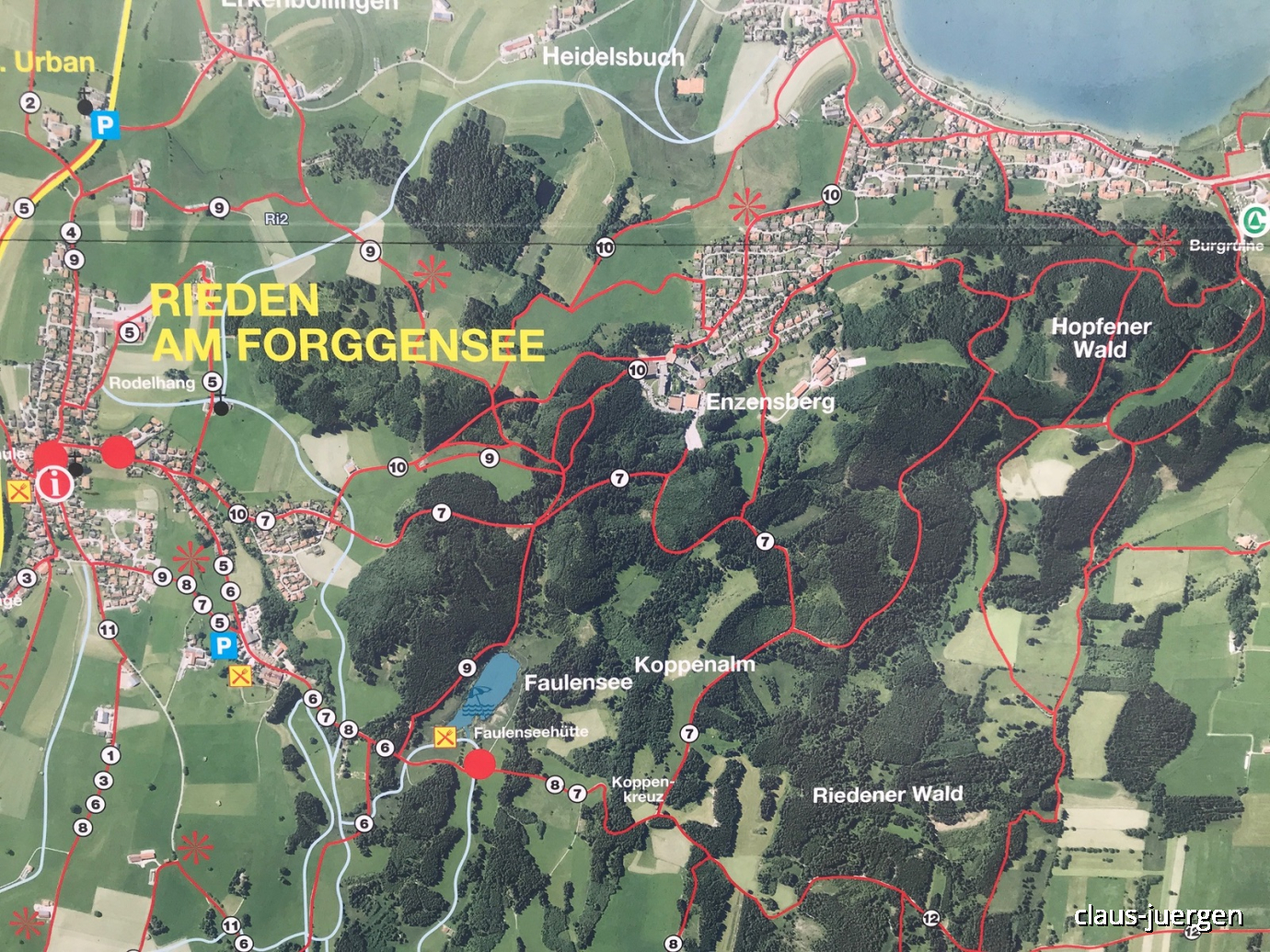 Anschließend geht es ein Stück der Uferpromenade entlang bevor wir den See in nordöstlicher Richtung verlassen und am Kurzentrum Enzensberg vorbei uns auf dem Weg zurück nach Rieden machen.