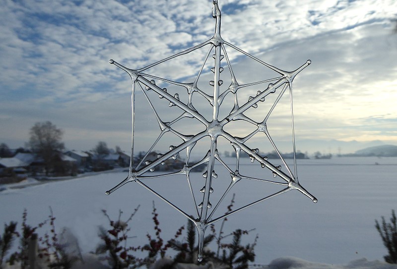 Karin, diese filigrane Schneeflocke ist aus farblosem, ungeschliffenem Glas.