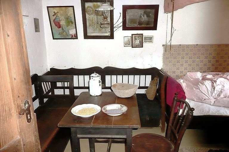 neben ihnen stehen „Kuriositáten” wie aus dem für die im 18. Jhd. Eingesiedelten Slowaken typische Anwesen „tirpák”-Hof oder das Ensemble der Zigeunerhütten am Dorfrand.