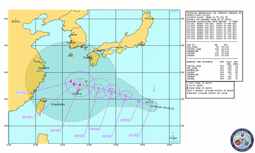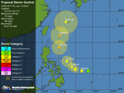 Der derzeitige Tropensturm Guchol zieht Richtung Japan und wird demnächst zu einem Hurricane hochgestuft.