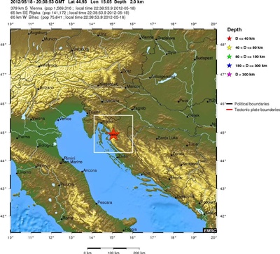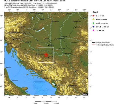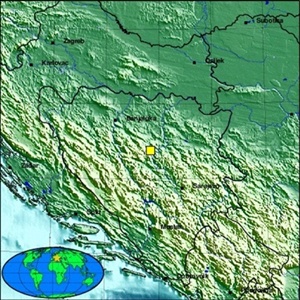 Ein Beben der Stärke 3,8 war in der Tiefe von 2 km in Bosnien-Herzegovina