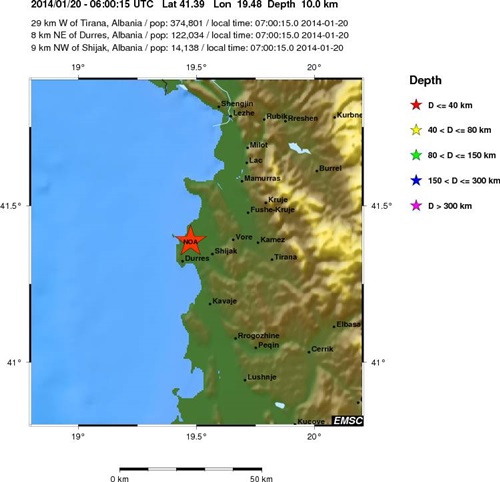 Wieder waren 2 Beben in Albanien, eines davon mit der Stärke 4,5