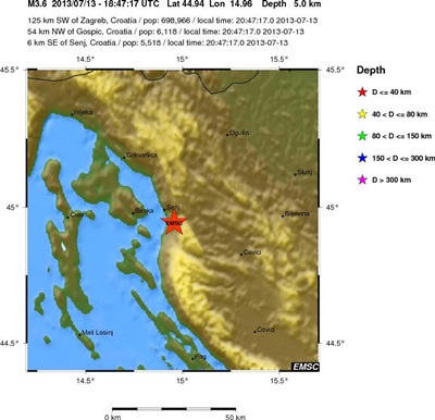 Ein Beben der Stärke 3,6 auf der Scala gab es in Kroatien.