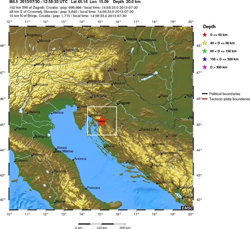 Ein kräftiges Beben der Stärke 4,5 gab es in Kroatien nahe Senj.