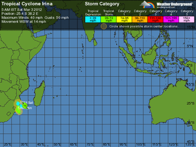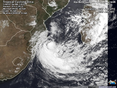 Der Tropensturm Irina steht vor der Küste von Südafrika und Mosambik.