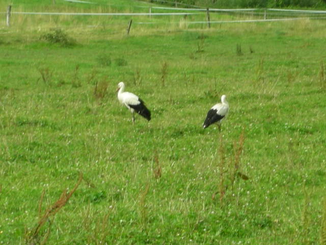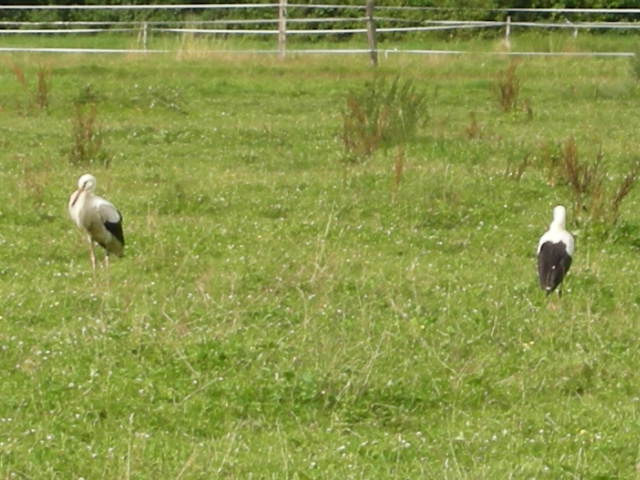 oder es gefällt ihnen, weil nach dem heftigen und langen Regen alle Wiesen nass sind und voll Wasserlachen stehen, in denen sich vermutlich auch Frösche aufhalten.