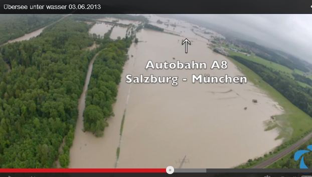 "Auch im Rest Bayerns ist die Lage teilweise dramatisch. In Kolbermoor bei Rosenheim brach ein Damm. Die Innenstadt von Rosenheim wurde für den Durchgangsverkehr gesperrt. Auch am Auerbach im Bereich von Oberwöhr hielt ein Damm den Wassermassen nicht mehr stand, die Anwohner wurden in eine Turnhalle gebracht. Am Inn wurden nach Angaben des Hochwassernachrichtendienstes in der Nacht zum Montag vielfach historische Höchstmarken überschritten."
