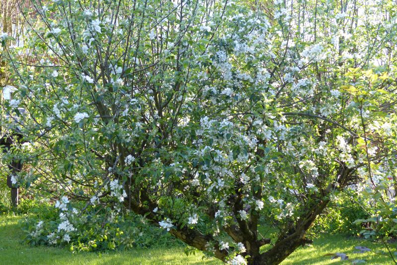 Mein kleiner Apfelbaum , Sorte James Grieve, hat heuer nachgezogen. Da ich auch die Bienen schwirren sah, kann ich voraussichtlich damit rechnen,