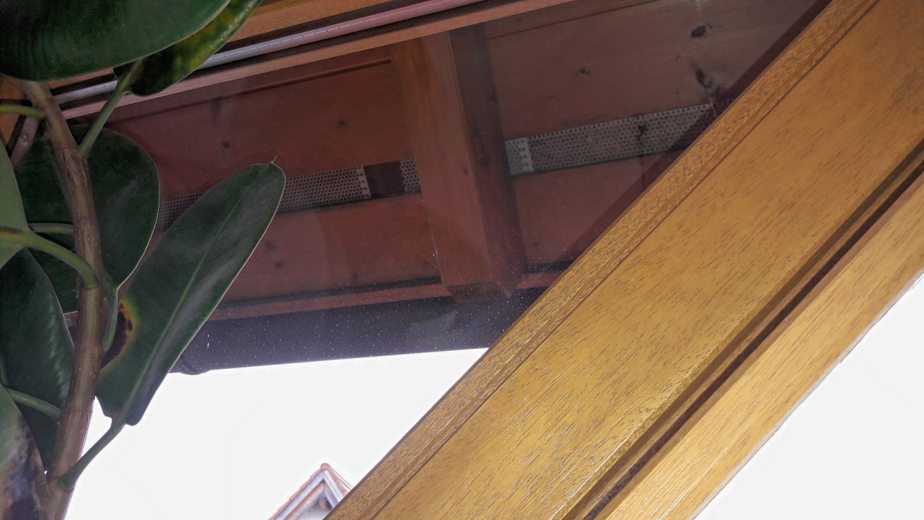 Da bei der Hitze der große Rolladen noch unten war, schaue ich mehr auf das kleine Eckfenster.