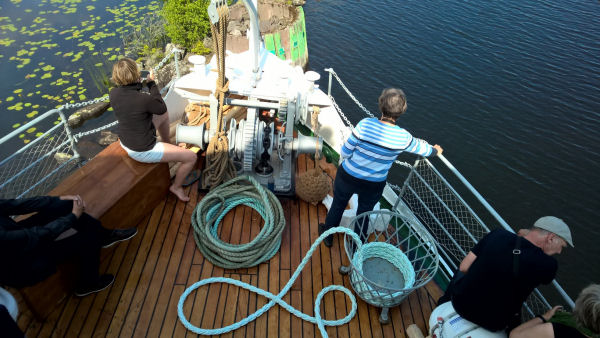 Die "Juno" hat uns wieder, wir mussten nicht über den Wall klettern, und bis wir in Motala am Ausgang des Vättern anlegen, haben wir auch unser Abendessen bekommen. Hier bleiben wir über Nacht, wobei die morgens um 5:00 zu Ende ist, zumindestens für die Besatzung (dh schon vorher, weil das Ablegen ja vorbereitet werden muss).