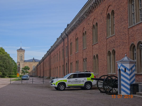 Das ursprüngliche Konzept der im 19. Jahrhundert gebauten Festung sah vor, dort in einem Kriegsfall die gesamte schwedische Elite, samt Hilfspersonal, und Reichsschatz sicher unterzubringen. Denn die Erfahrung mit den Kriegen gegen Russland hatte gezeigt, dass die Ostseeküste verwundbar war - so hatten russische Truppen im 18. Jahrhundert unter anderem Umeå und Norrtälje zerstört. Das galt umso mehr, als dass seit 1809, nach dem gemeinsam mit Napoleon verlorenen Krieg gegen Russland Finnland bis hin zu den Åland-Inseln unter russische Kontrolle kam. Allerdings war schon während der 90jährigen Bauzeit (1819-1909) klar geworden, dass aufgrund der Weiterentwicklung der Artillerie die Festung militärisch nicht zu verteidigen gewesen wäre. So blieb sie eine heute noch im Betrieb befindliche Kaserne - weshalb in Teilen der Anlage Photographierverbot (wegen der Bilderverbreitung im Internet) herrscht, ausserdem waren im - inzwischen geschlossenen - Krankenhaus lange Zeit die meisten Kinder der Region zur Welt gekommen.