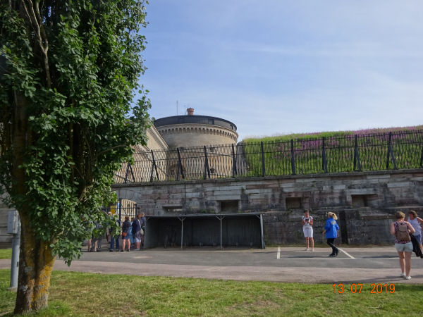 In weiten Teilen gleicht die Festung einer Kleinstadt mit großzügigem Park, wenn da nicht die Autos mit den Militärkennzeichen wären - bei einem früheren Besuch begegneten mir schon Soldaten mit voller Ausrüstung und im Laufschritt, und irgendwo krachte es auch mal. Andererseits gibt es Stellen im Wall um die Anlage, die man bequem übersteigen kann, sogar als relativ Unsportlicher wie ich - damals selbst getestet - aktuell wär es nicht sinnvoll, sich von der Truppe, äh Gruppe zu entfernen.