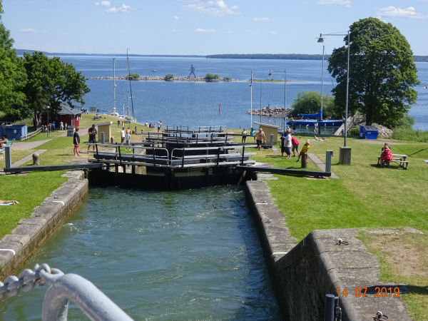 Es gibt noch einen Grund, warum so ein Mord auf einem Schiff wie dem unseren (das Opfer im Buch, deren schwedischer Titel "Roseanna" lautet, war einzeln reisende Kanalschiffspassagierin) nicht passieren kann. Ohne zuviel zu verraten, spielt eine wesentliche Rolle, dass damals vereinzelt stundenweise Deckstouristen mitgenommen wurden. Die hatten dann keine Kabine und folglich auch keine Kabinenregistrierung. Auch kann ich mir nicht vorstellen, dass ein Single-Tourist (ich bin auf unserer Tour der einzige, alles andere sind Paare) zwei Tage vor dem Reiseende unbemerkt abhanden kommen könnte.