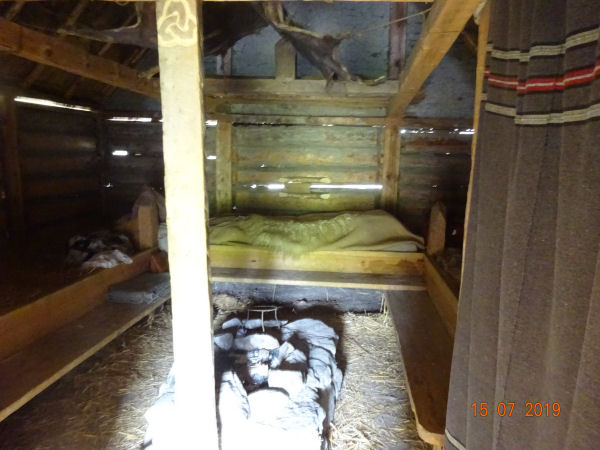 Nahe der Anlegestelle gibt es ein Freilichtmuseum, man darf auch in die Hütten hineingehen. Wobei mich das Innere an unsere Hüttendörfer in Wyhl , Gorleben oder an der Frankfurter Startbahn West erinnert.