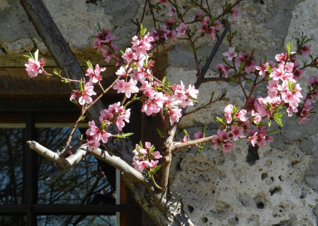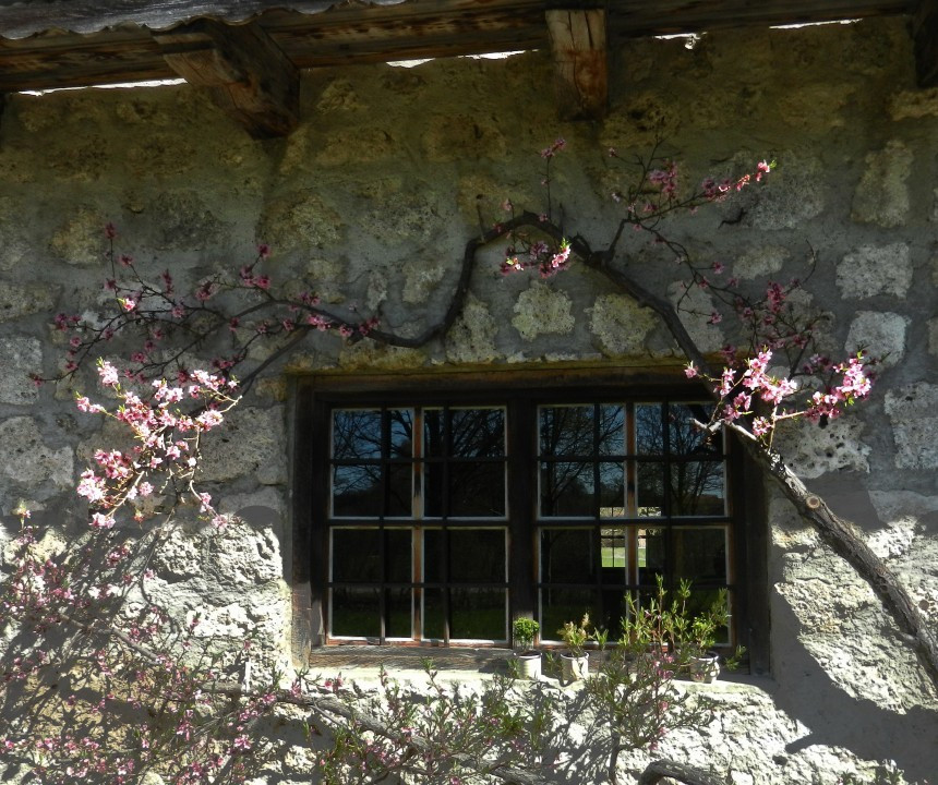 Diese Pfirsichblüten habe ich an der Wand eines alten Bauernhauses im Bauernhofmuseum Amerang im Chiemgau gesehen.